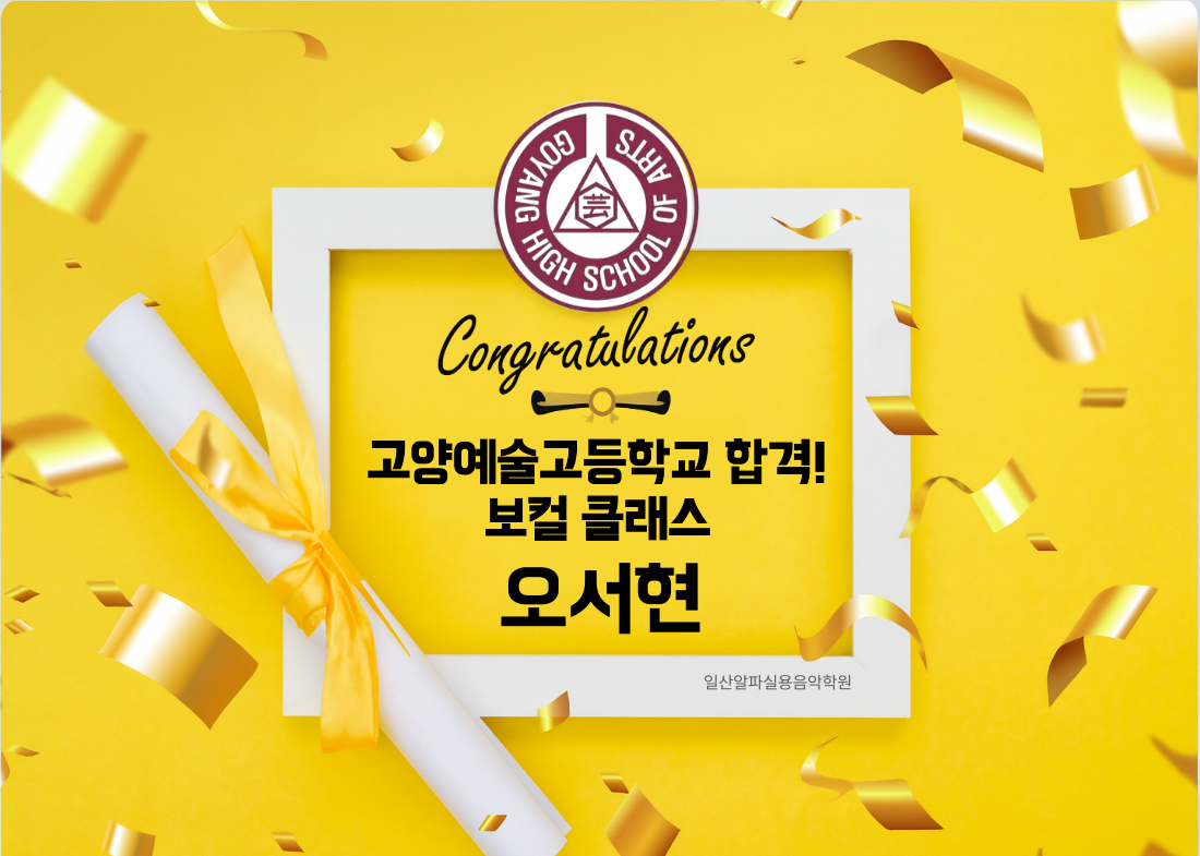 고양예술고등학교에 최종 합격하였습니다! 축하합니다!!