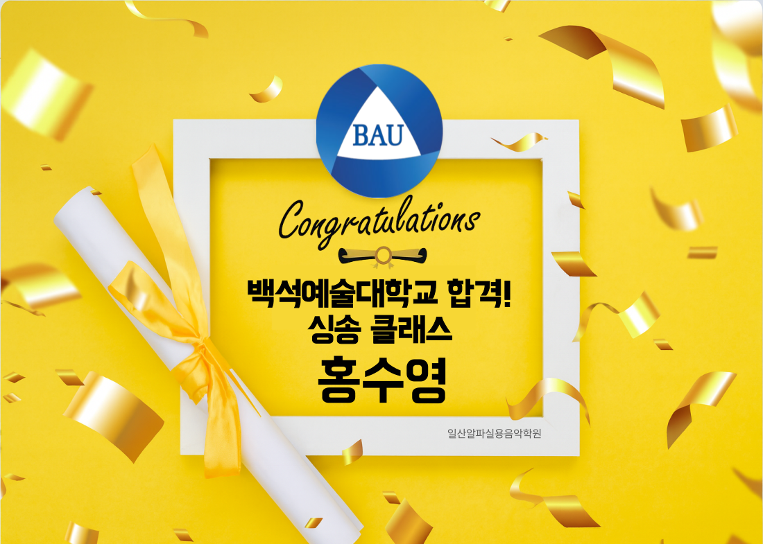 백석예술대학교 합격하였습니다! 축하합니다!!