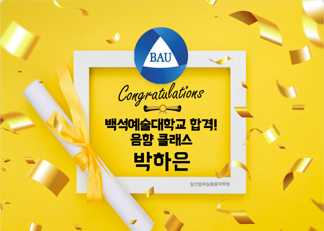 백석예술대학교 합격하였습니다! 축하합니다!!